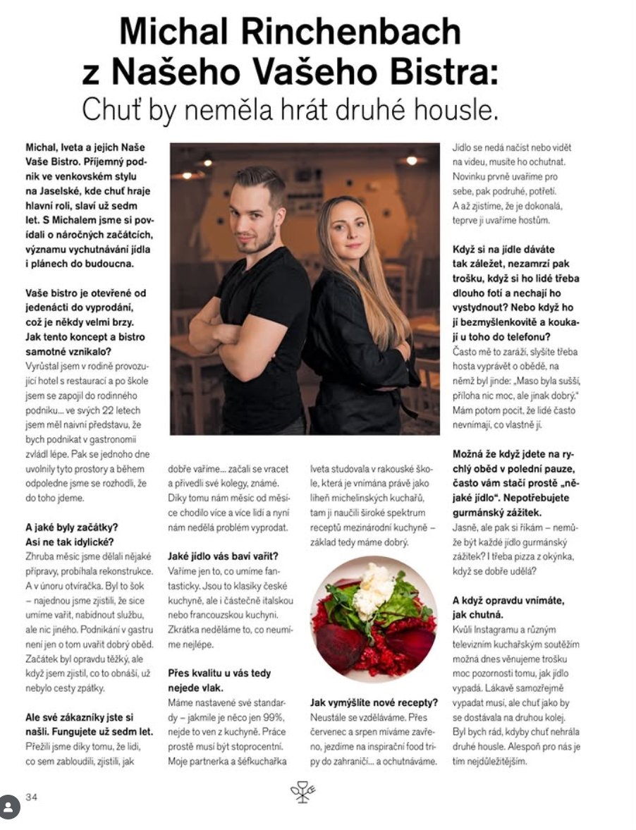 Nejsme jen kolegové – jsme parta kamarádů, kteří spolu tráví čas i mimo bistro. Sdílíme vášeň pro gastronomii, ale i pro dobré zážitky, humor a vzájemnou podporu. V práci i mimo ni si pomáháme, inspirujeme se a posouváme se dál.